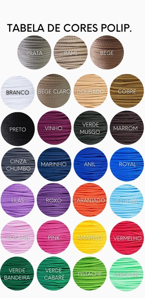 Para mais informações sobre Cores e Cordões disponíveis, clique aqui.