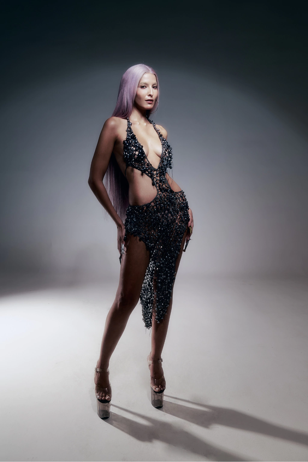 Com um design que valoriza as curvas femininas, decote e recorte profundos, o vestido se ajusta perfeitamente ao corpo, realçando suas sensualidade. Uma experiência única de estilo e sofisticação.